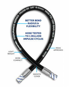 The PIRTEK Endurance Series® hose line of compact hydraulic hoses is available at your local PIRTEK location throughout the United States. On-site PIRTEK technicians will have these high-performance hoses on hand for their field installations. The PIRTEK Endurance Series hose line provides superior flexibility and accommodates a tighter bend radius than conventional SAE hoses. It also stands up to high pressure and is tested at one million impulse cycles.