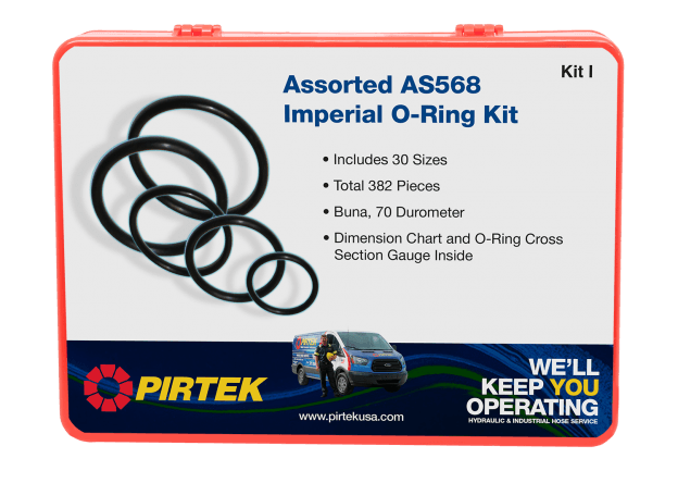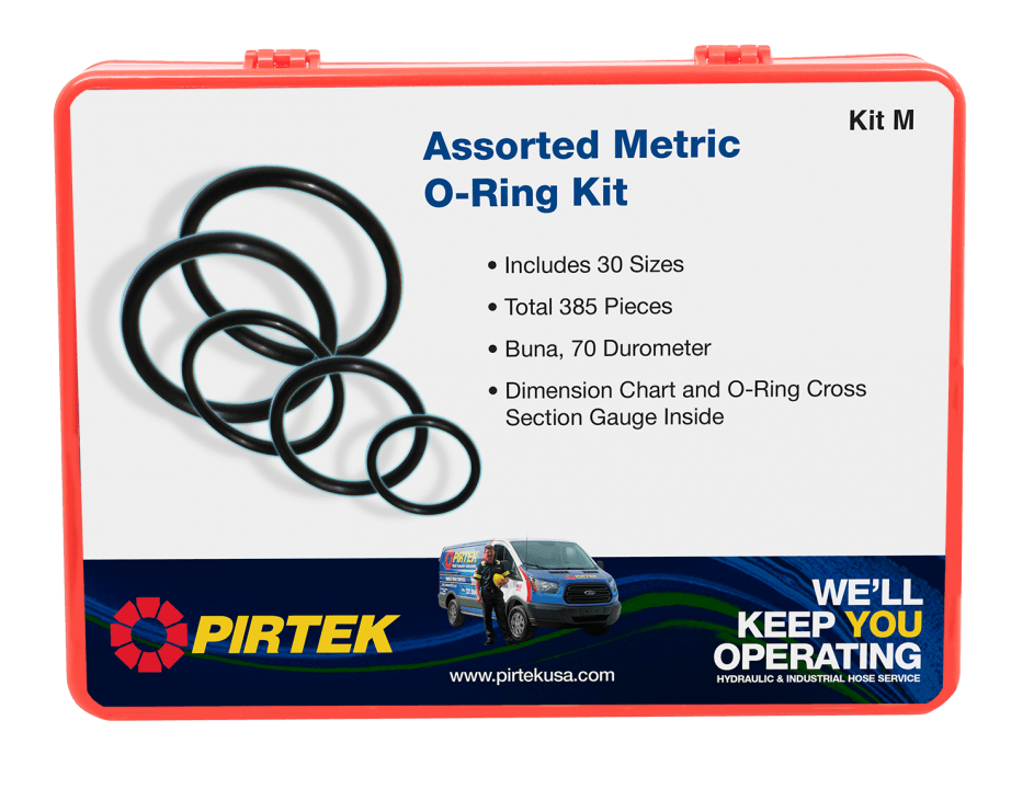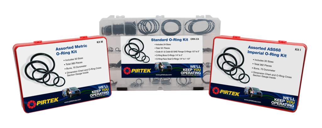 PIRTEK O-Ring Kits are available in standard, metric, and imperial sizes. Each kit includes a durable plastic storage case, keeping the various O-ring sizes separated and organized.