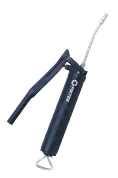 Lever grease gun designed for use in general lubrication and maintenance work. Drop-resistant steelhead. Handles NLGI 1 and 2 greases. Includes: 6” steel extension and standard 4 jaw coupler with ball check.